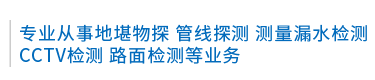 北京瑞安達(dá)勝物探技術(shù)有限公司成立于2012年,是一家管線探測、漏水檢測、地面空洞(塌陷、病害)檢測等業(yè)務(wù)的企業(yè)。公司自成立以來一直為各市政單位、開發(fā)商、設(shè)計單位、物業(yè)小區(qū)、學(xué)校、工廠等企事業(yè)單位提供:地下管線定位探測、漏水檢測、地質(zhì)勘測、資源勘探等業(yè)務(wù)。